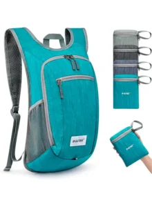 - Mochila plegable de 10 litros, ideal para cortas caminatas.